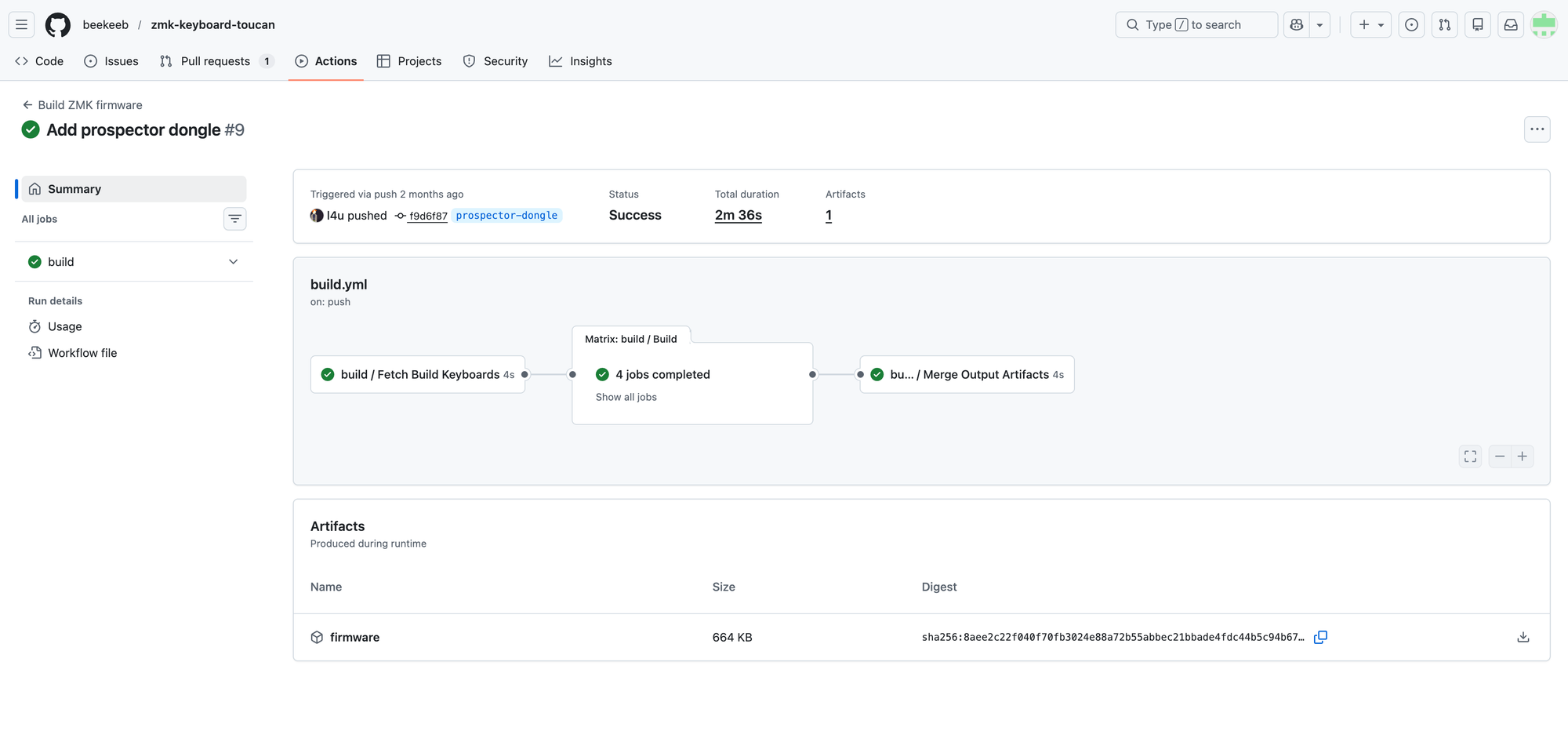 今回使用するファームウェアはToucanのビルドガイドに掲載されているProspector Dongle用ファームウェアです。